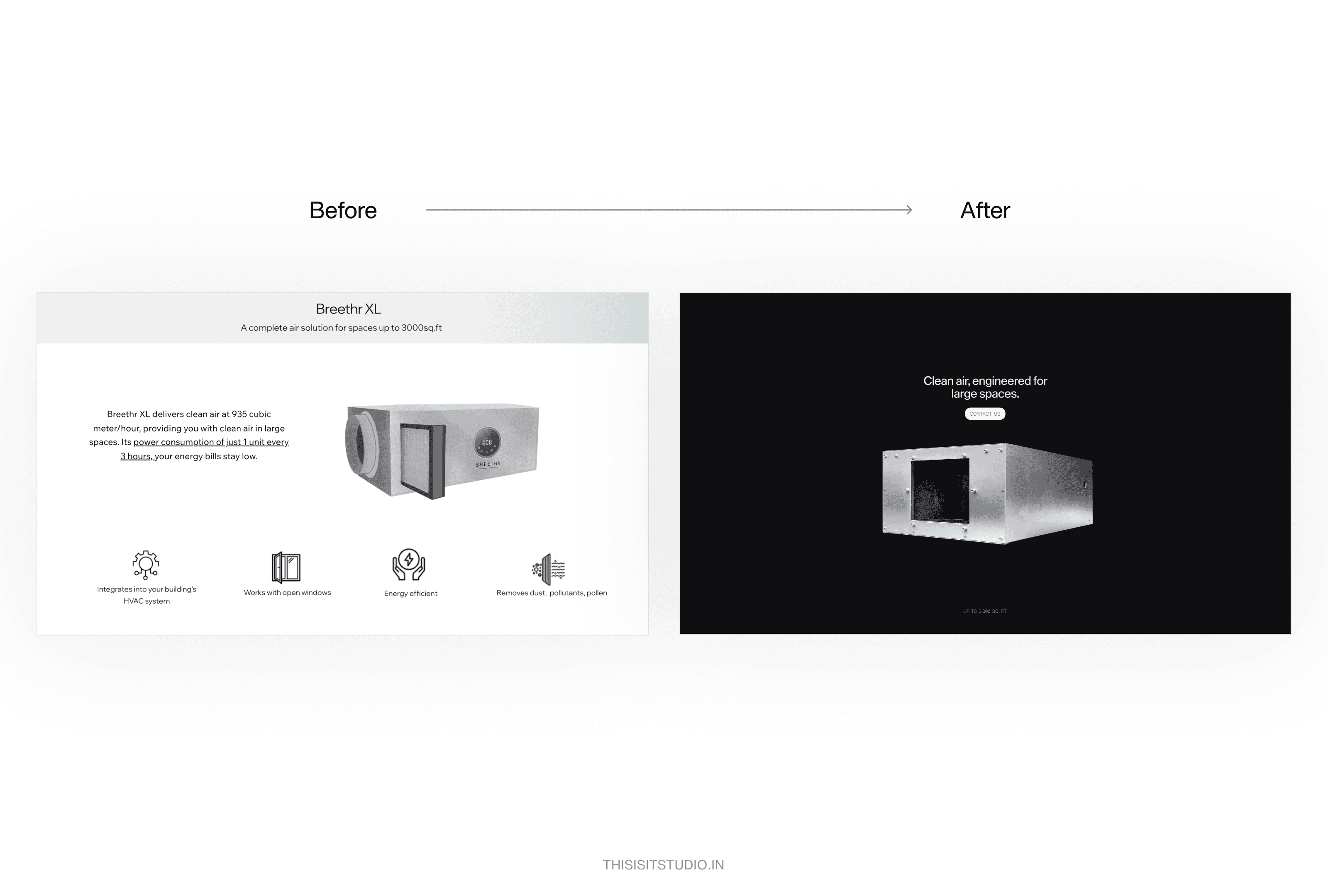 This is it, created from scratch the physical and digital foundation for Breethr. Our work focused on building that foundation before anything went to market. We developed a new narrative arc that reframed Breethr from a purifier device to next-generation air optimisation system. We structured a brand system designed to introduce Breethr as a new possibility for how air can be perceived and experienced, grounded in years of research, while remaining credible under investor scrutiny and relevant for end consumers. We worked on the hardware form and product surface language to ensure the product itself carried the positioning, not just the website around it. Motion and immersive 3D environments were used to communicate and translate the invisible around us. The result is a futuristic modular form design by this is it and the brand identity and system to support that and operate as one.