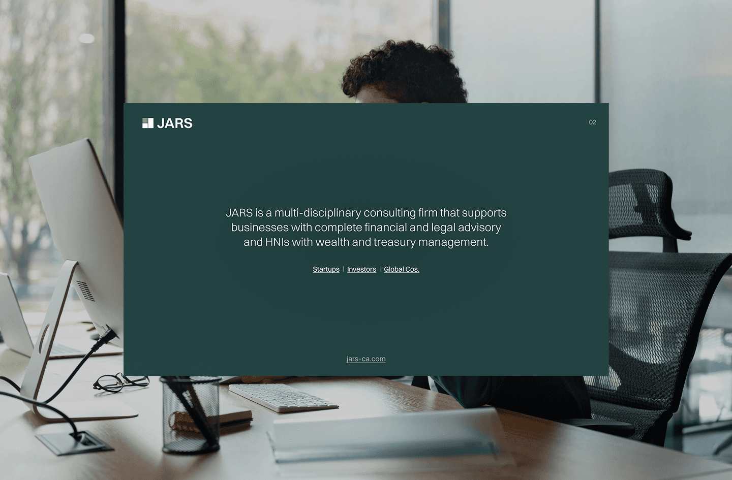 Strengthen JARS' brand identity for international expansion. Execute a full strategic refresh, benchmarking, logo systems, visual language, website and corporate presentation that communicates clarity, expertise, and professionalism to high-value clients.