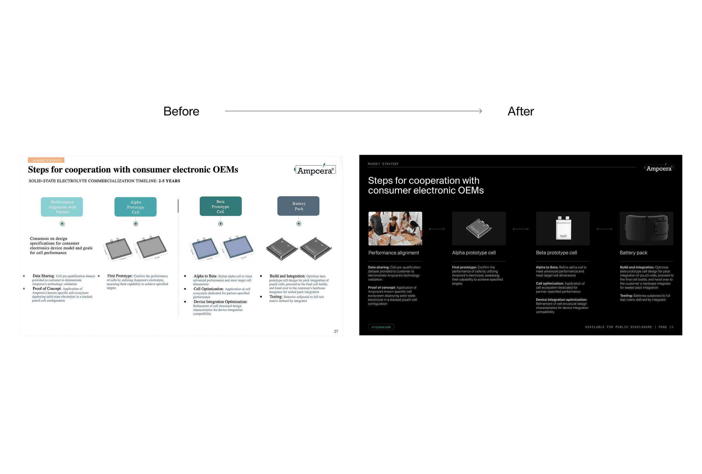 Ampcera was preparing for fundraising and rapid market expansion, but their brand and communication system no longer reflected the maturity of their solid-state electrolyte technology or their commercial readiness. Their scientific breakthroughs and partnerships were advancing far faster than the narrative, resulting in a gap between their real capabilities and how investors, automotive partners, and government stakeholders perceived them.