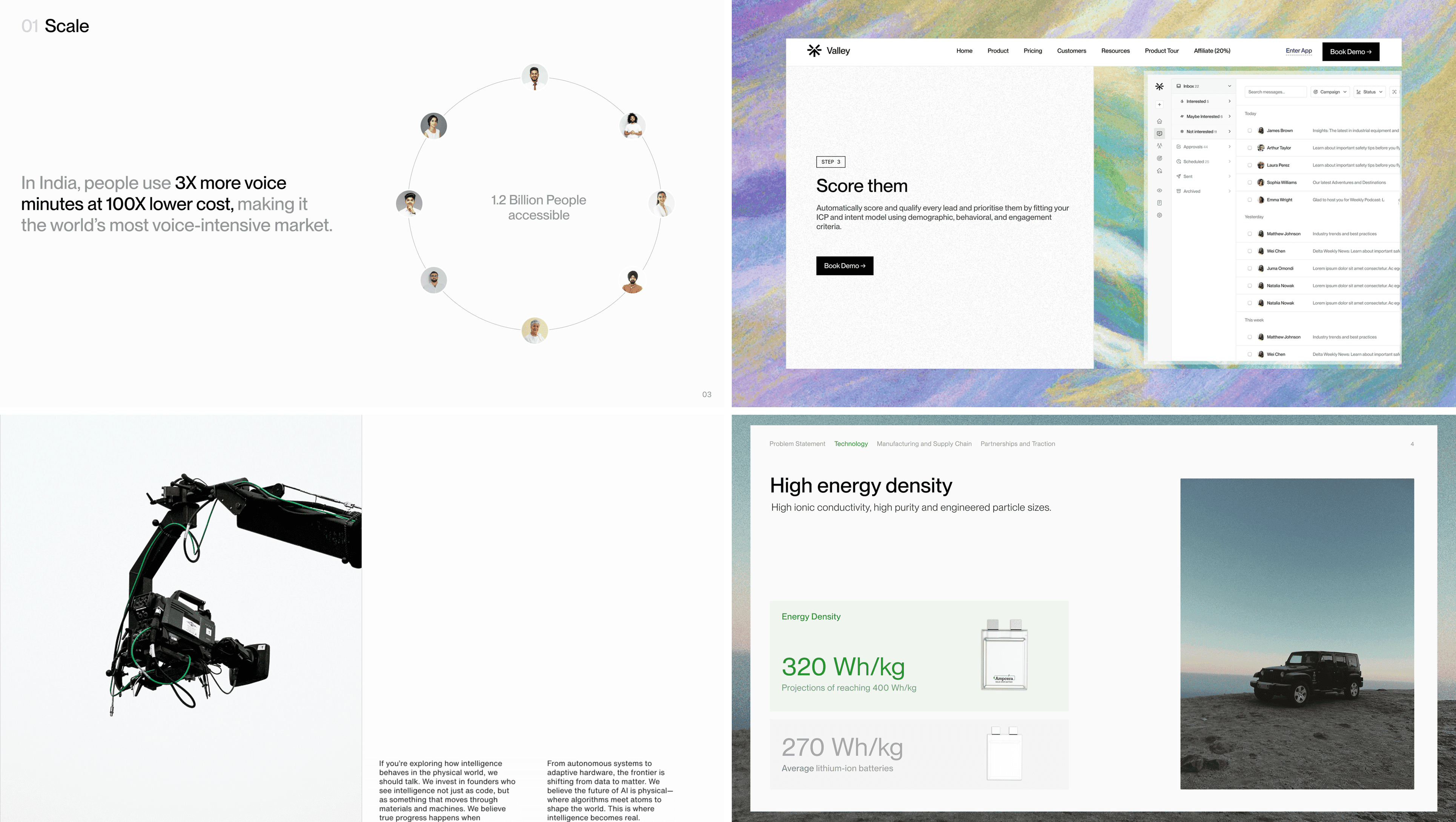 02. Extended a 9-month partnership with a US solid-state battery company, building design systems and investor materials that supported strategic partnerships and government grants.