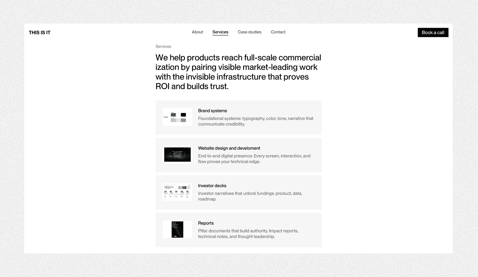 From 2026, This Is It Studio works as a design partner to technical and deep-tech teams building in: